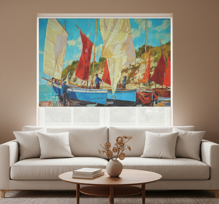 Reference: E8593Transform your living space with our stunning Living room roller blind three boats on the water. This exquisite design features a scenic depiction of three boats gracefully gliding across serene waters, blending tranquility and elegance. The rich hues and intricate details create a calming atmosphere, making it the perfect addition to any living room. With easy assembly in just 2 clicks, this roller blind is also easy to clean and disassemble, ensuring your windows and surroundings remain spotless. Not only does it protect your room from direct sunlight, but it also provides privacy and allows you to regulate your room temperature while enhancing your home's decor.