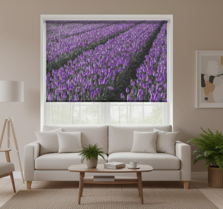 Living room roller blind tulip field design