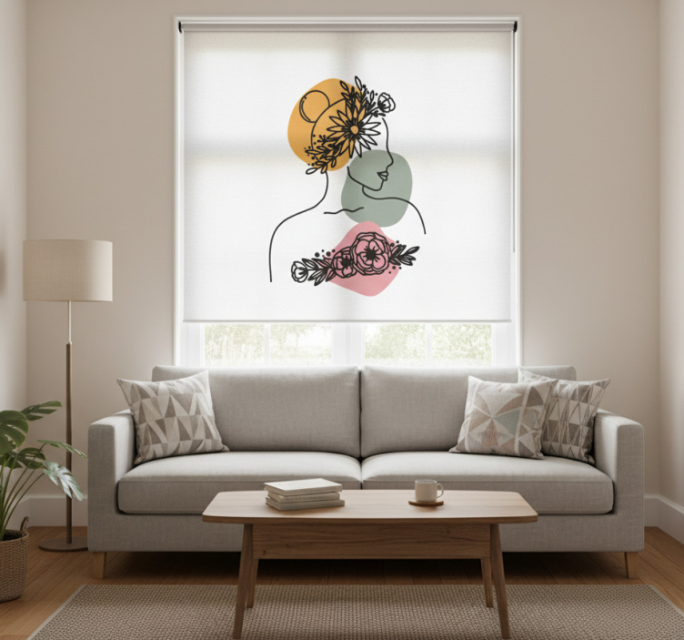Living room roller blind with amazing floral face