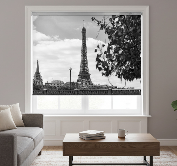 Reference: E8581Transform your living space with our stunning Living room roller blind with black and white eiffel tower. This unique design features a captivating black and white depiction of the Eiffel Tower, elegantly blending modern aesthetics with a touch of classic charm. The intricate graphic not only enhances the visual appeal of your room but also serves practical functions such as regulating room temperature, offering privacy, and protecting against direct sunlight. With easy assembly and disassembly in just two clicks, cleaning becomes a breeze, making this roller blind a functional yet stylish addition to any living area!