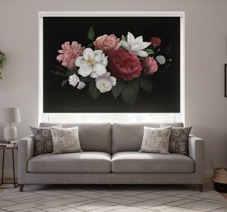 The Living room roller blind with vintage roses on black living room roller blind is the perfect addition to elevate your home decor! Imagine the warmth and sophistication it brings to your living space, turning a simple room into a cozy sanctuary. This roller blind not only beautifies your windows but also protects your interiors from direct sunlight, making it an essential decorative element that combines style with functionality.