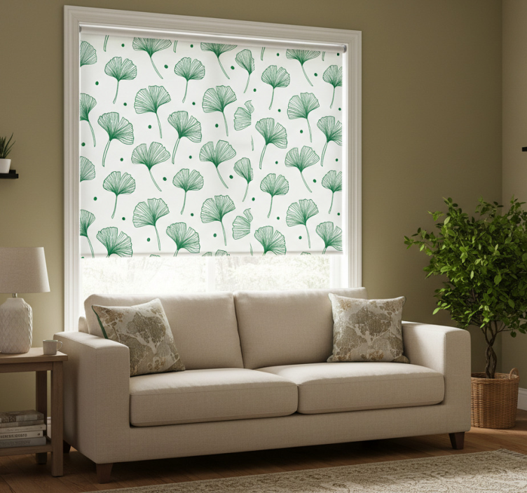 Reference: E7672Introducing our stunning Modern roller blind big ginkgo green leaves, a beautiful fusion of contemporary design and nature-inspired elegance. This roller blind features an enchanting pattern of large ginkgo leaves in vibrant green hues, bringing a refreshing touch of the outdoors into your living space. With an easy assembly process that requires just 2 clicks, this roller blind is not only visually appealing but also incredibly functional. It is easy to clean and disassemble, allowing for quick maintenance of your windows and surroundings. Protect your room from direct sunlight while enjoying the privacy it offers when lowered. This versatile window treatment allows you to regulate room temperature and provides security by letting you see outside without being seen.