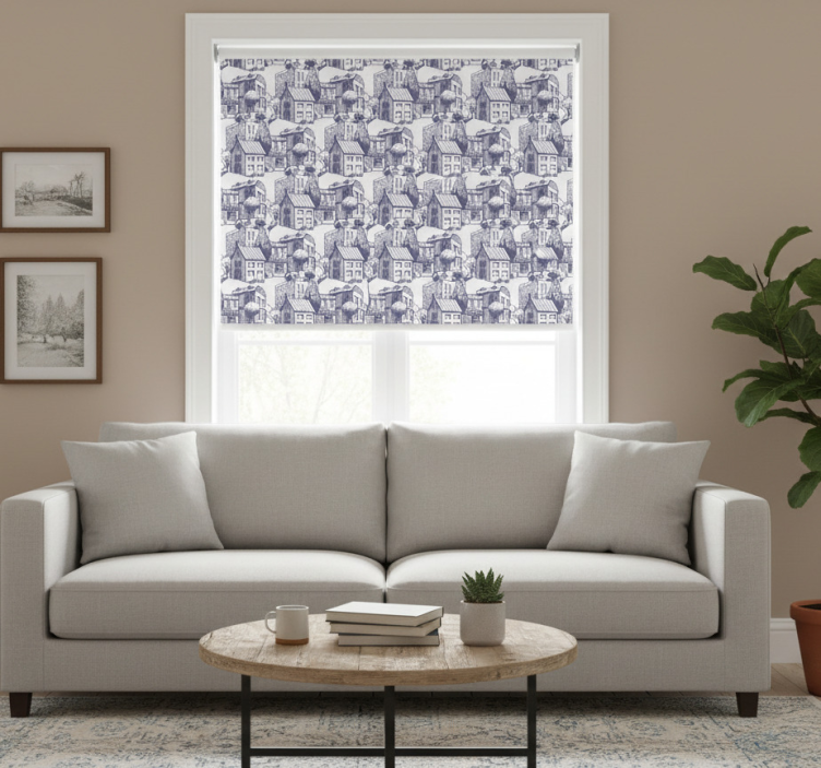 Reference: E7725Introducing our Modern roller blind city vintage design, a stunning blend of contemporary aesthetics and vintage charm! This unique roller blind features an artistic cityscape pattern that effortlessly elevates your home decor. With its easy assembly in two clicks, simple cleaning process, and effective sunlight protection, it is the perfect addition to any room. Enjoy the privacy it offers when lowered, while still allowing you to regulate the room temperature and maintain security by seeing without being seen. What’s more, this roller blind is 100% customizable, available in three different textures to perfectly match your light and privacy needs!