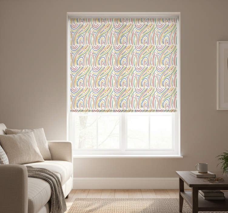 The Modern roller blind colorful lines on white background modern roller blind is not just a window covering; it is an essential piece of decor that elevates your home's aesthetic to new heights! Imagine the joy of brightening your room while enjoying the benefits of privacy and sun protection. This roller blind invigorates your living space, creating a cheerful ambiance that inspires creativity and comfort. It's more than just decoration; it's a statement of your unique style!