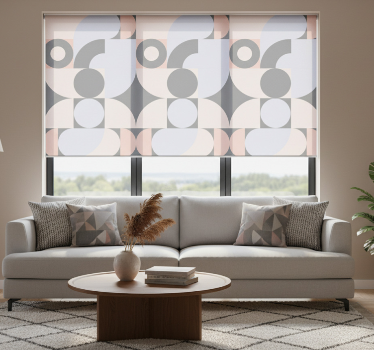 Transform your living space with the Modern roller blind geometric circles pattern modern roller blind. Its eye-catching design not only enhances the beauty of your interiors but also creates a warm and inviting atmosphere. Imagine the joy of having a stylish window treatment that protects your home from harsh sunlight while allowing you to maintain your privacy. Elevate your decor and experience the perfect blend of style and practicality with this incredible product!