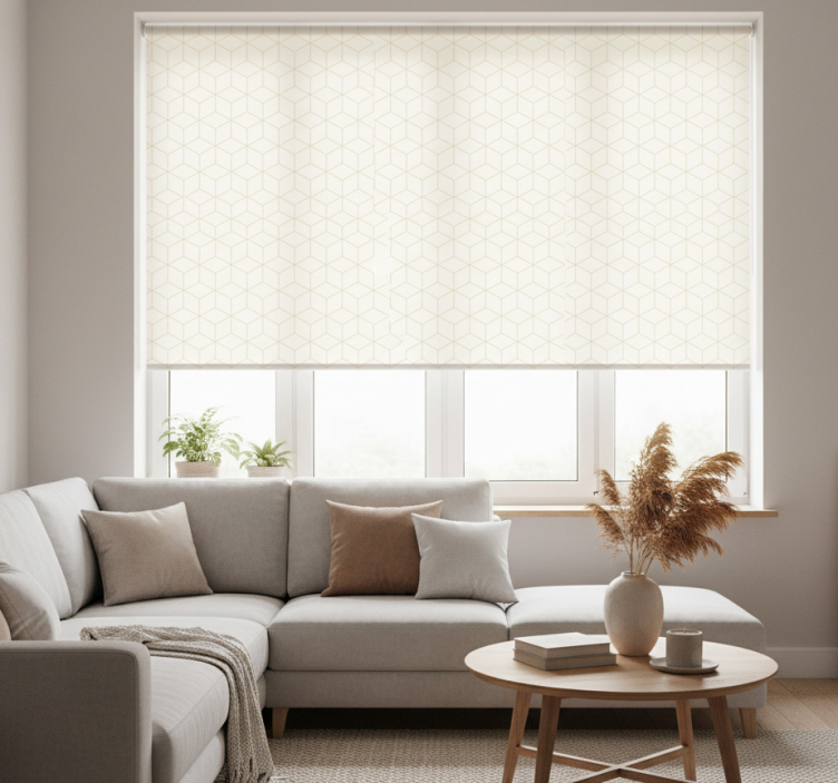 Reference: E7827Transform your living space with our Modern roller blind geometric perspective wallpaper, featuring a stunning design that combines contemporary geometric shapes with a captivating perspective effect. This wallpaper not only enhances your room's aesthetic but also offers practical benefits such as easy assembly, effortless cleaning, and the ability to regulate room temperature while ensuring your privacy.