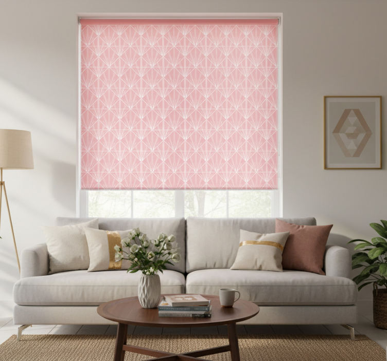 Reference: E7622Introducing the Modern roller blind geometric pink design, a stunning blend of contemporary style and functionality! This roller blind features a chic geometric pattern in soft pink hues, adding a touch of elegance to any space. With easy assembly and disassembly in just two clicks, this roller blind ensures you can keep your windows clean and fresh. It effectively protects your room from direct sunlight while providing privacy whenever you need it. You can also regulate your room temperature while enjoying the security of being able to see outside without being seen. Plus, the decoration of your room will be instantly improved with this stylish addition!