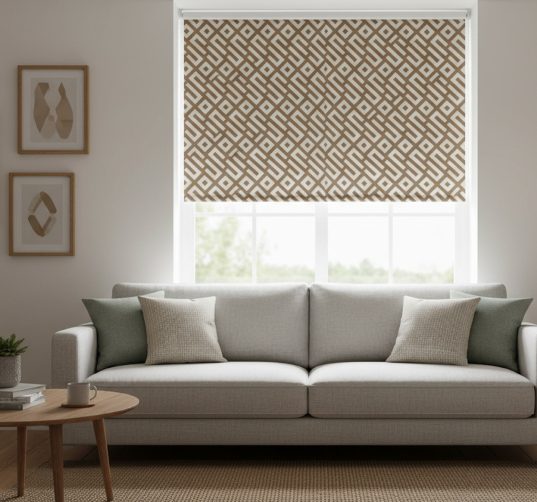 The Modern roller blind in earthy geometric design modern roller blind is an exceptional choice for anyone looking to elevate their interior decor. Its unique geometric design adds a touch of sophistication and warmth to any room, making it not just a functional item but a beautiful element of your home. By integrating this roller blind into your decor, you create an inviting atmosphere that resonates with contemporary aesthetics while ensuring practicality. Let your windows tell a story of style and comfort!
