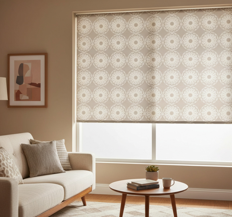 Modern roller blind in eclectic beige circles
