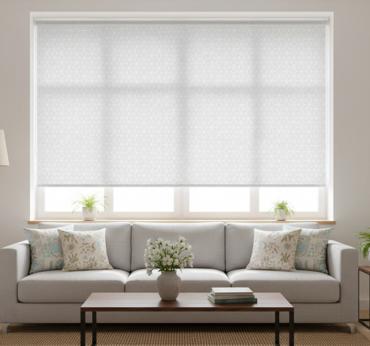 The Modern roller blind in grey shapes on white background modern roller blind is an exceptional choice for elevating your interior decor! Its chic design adds an artistic flair to your living room, bedroom, or office, effortlessly enhancing the overall ambiance. With its ability to protect your space from direct sunlight and provide privacy when lowered, this roller blind not only beautifies your room but also contributes to a comfortable and secure environment. Experience the perfect blend of style and utility!