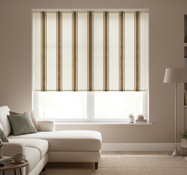 Modern roller blind in mocha vertical lines