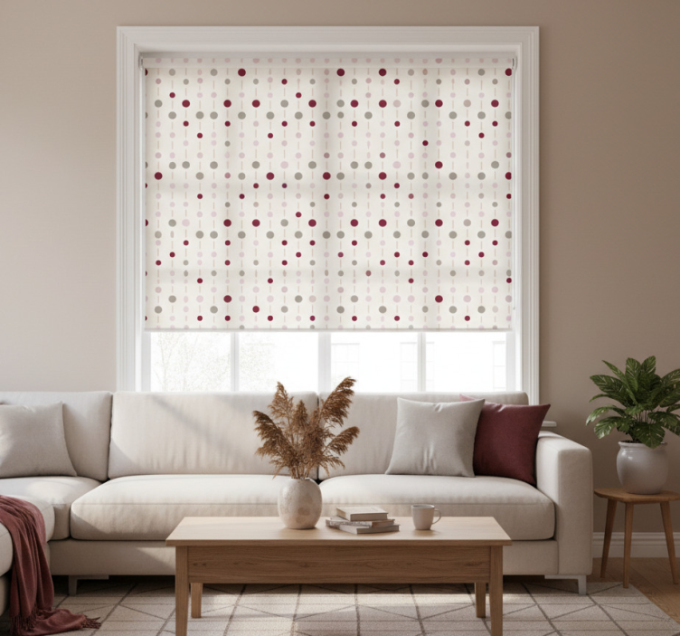Modern roller blind in pastel dot pattern with lines