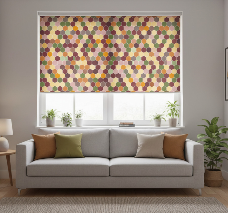 Modern roller blind in textured colorful hexagons