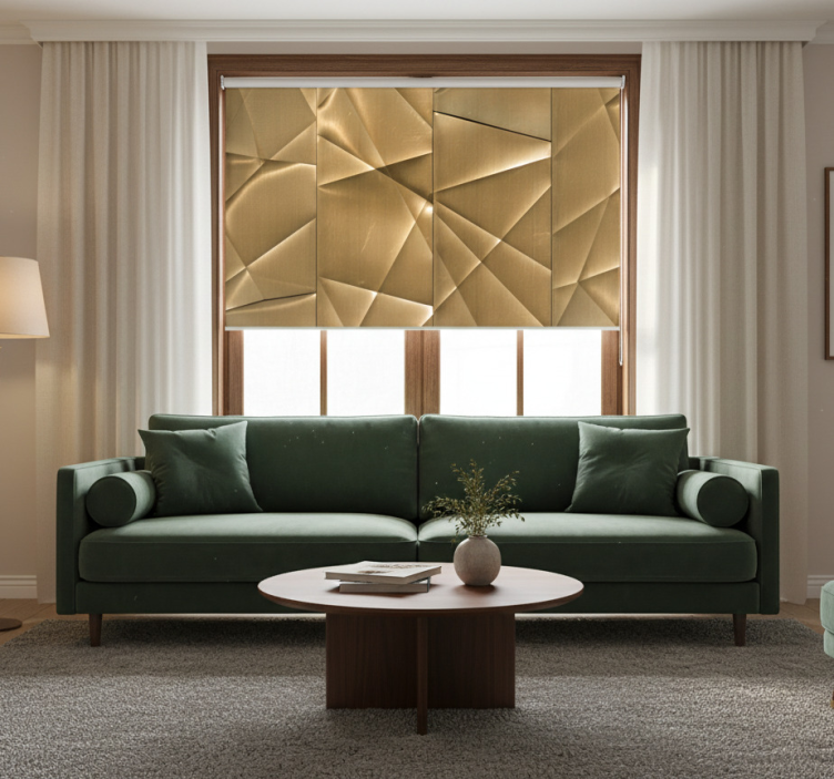 Modern roller blind with 3d golden polygon design