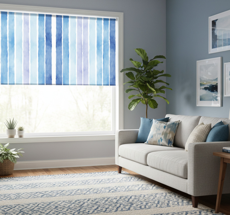 Modern roller blind with blue watercolor lines pattern