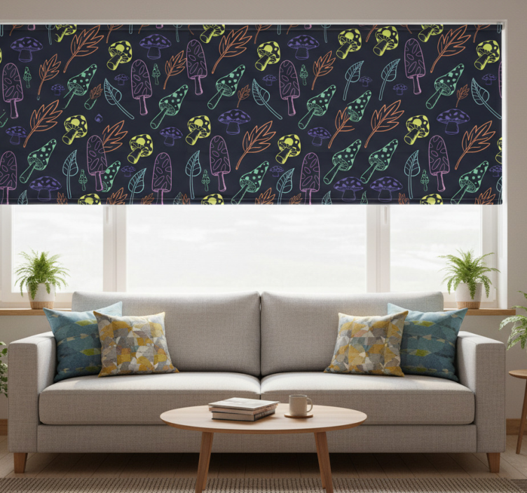 Modern roller blind with colorful mushroom pattern