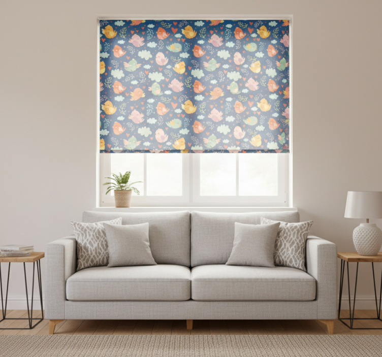 Reference: E7800Transform your space with our Modern roller blind with cute flying bird design, featuring an enchanting motif of playful birds fluttering across a soft backdrop. This delightful design blends whimsy and elegance, making it a perfect addition to any room. Enjoy the ease of easy assembly in just two clicks and the convenience of easy cleaning, ensuring your home remains vibrant and fresh. Protect your space from direct sunlight while maintaining your privacy with this stylish roller blind!