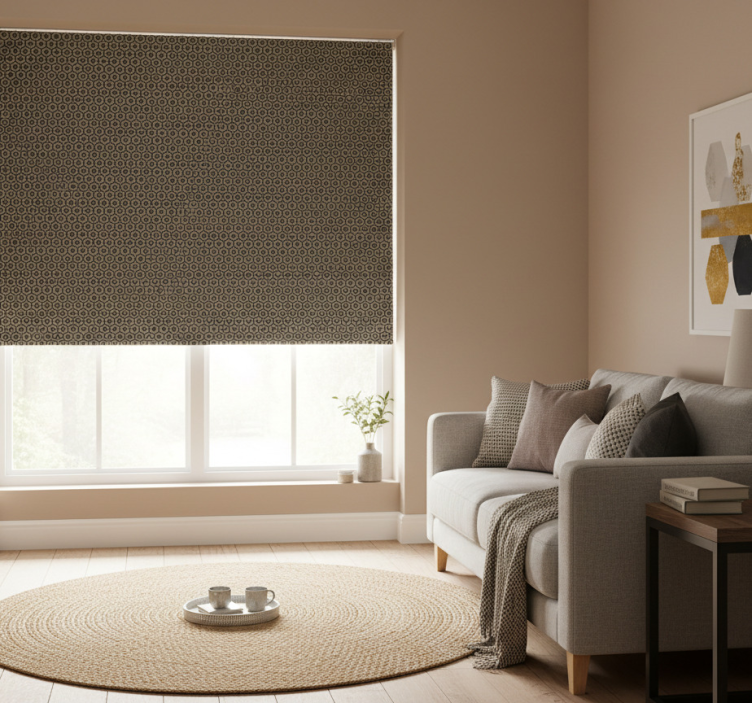 The Modern roller blind with gold and gray hexagons modern roller blind is an inspiring choice for anyone looking to elevate their home decor. Its striking geometric design adds a contemporary touch to any room, making it a versatile addition to your interior style. Whether in a living room, bedroom, or office, this roller blind brings a sense of sophistication and elegance, transforming your space into a haven of style and comfort!