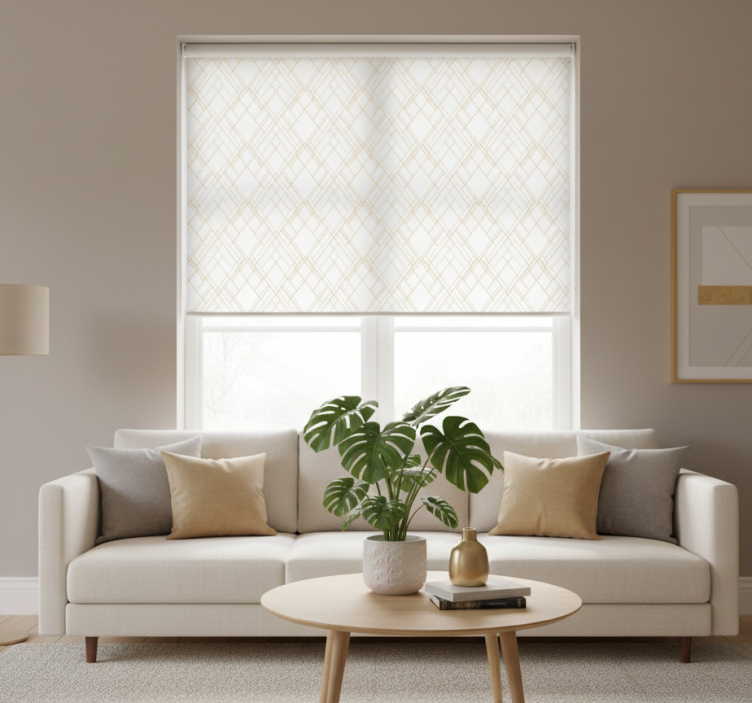 The Modern roller blind with golden abstract lines modern roller blind is an exceptional choice for anyone looking to elevate their interior design. Its unique pattern and sophisticated color palette effortlessly harmonize with various décor styles, making it a versatile addition to your living space. Transform your windows into a focal point that inspires creativity and warmth, while also providing essential privacy and light control!