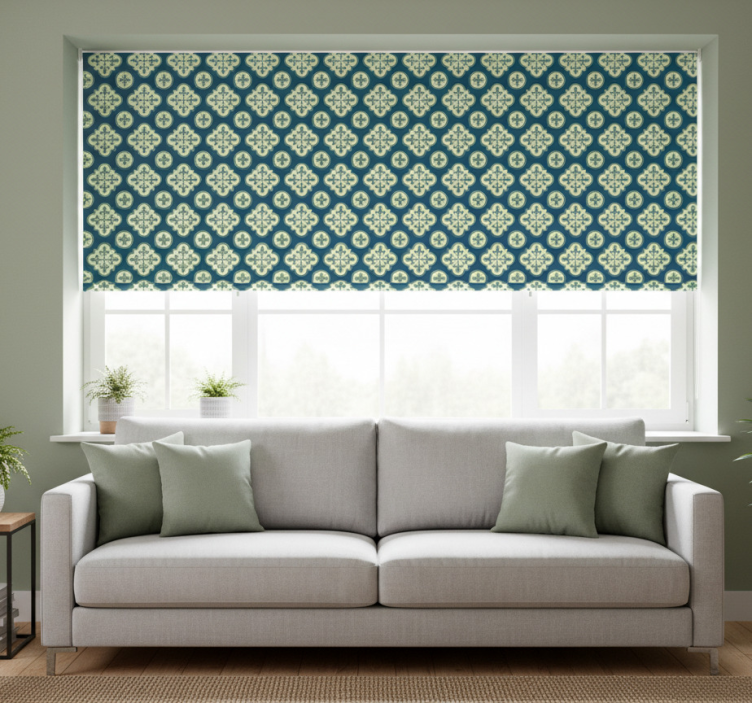Modern roller blind with green clover tile design