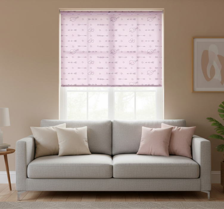 Modern roller blind with heart silhouette pattern