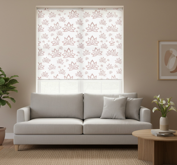 Modern roller blind with minimalistic lotus pattern