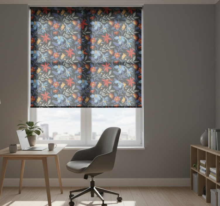 The Office roller blind flowerprint 'tricot' black office roller blind is not just a window covering; it’s a statement piece for your décor! Imagine transforming your office into a serene oasis where productivity thrives amidst beauty. The intricate flowerprint design invites warmth and creativity, making it an ideal choice for anyone looking to uplift their workspace. Additionally, this roller blind provides essential privacy and sun protection, ensuring you can focus on your tasks without distractions. Elevate your office atmosphere with this stunning addition!