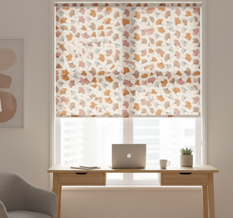 Reference: E7312Transform your space with our Office roller blind ginkgo leaves hand drawn, featuring an exquisite hand-drawn ginkgo leaves design that brings a touch of nature indoors. This stunning roller blind not only enhances your room with its artistic flair but also offers functional benefits such as easy assembly in just two clicks, effortless cleaning, and the ability to regulate room temperature while providing privacy and security.