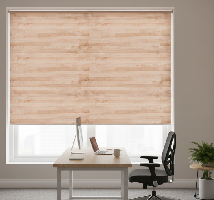 The Office roller blind in elegant brown wood office roller blind is not just a window covering; it's a statement piece that elevates your interior design. Its warm wood tones blend effortlessly with any decor style, providing a touch of sophistication to your office or home. Imagine the welcoming ambiance it creates, inviting both productivity and comfort. This roller blind is perfect for those who appreciate the art of decoration and want to create a harmonious living space that reflects their unique personality!