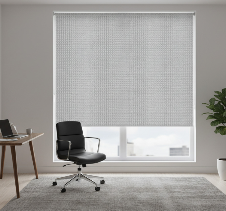 The Office roller blind minimalistic grey vertical pattern office roller blind serves as an inspiring decorative element that enhances the beauty of your office space. Its elegant design adds a touch of sophistication, transforming a mundane window into a stylish focal point. This roller blind not only elevates the aesthetic appeal but also allows you to regulate room temperature and maintain privacy, making it an essential choice for any modern workspace.
