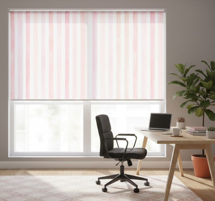 Our Office roller blind in watercolor pink stripes office roller blind is more than just a functional item; it is a statement piece that breathes life into your office environment! This enchanting design adds a touch of creativity and warmth, making your workspace feel more inviting and inspiring. Whether you’re hosting clients or working on a project, this roller blind will surely impress and uplift the mood of the room.