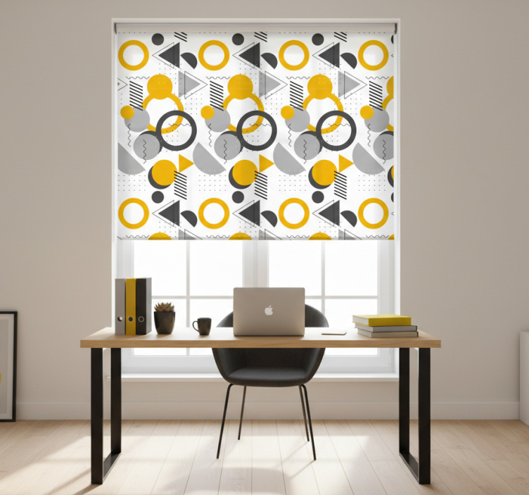 Reference: E7266Introducing our Office roller blind seamless retro geometric design, a stunning blend of style and functionality! This unique design features a captivating retro geometric pattern that adds a touch of elegance to any office space. Crafted to seamlessly integrate into your decor, it not only enhances the visual appeal but also serves practical purposes. Enjoy easy assembly in just 2 clicks, hassle-free cleaning, and the ability to regulate room temperature while maintaining privacy. With customizable measurements and a choice of three different textures, this roller blind is perfect for your individual needs!