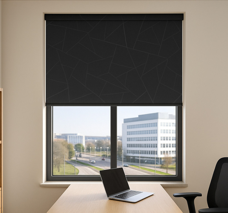 Reference: E6044Transform your space with the Office roller blind trendy black sun protection, a perfect blend of style and functionality! This stunning roller blind features a sleek black design that effortlessly complements any decor, while providing essential sun protection and privacy. With its easy assembly in just two clicks, cleaning convenience, and customizable measurements, it is the ultimate choice for modern living!