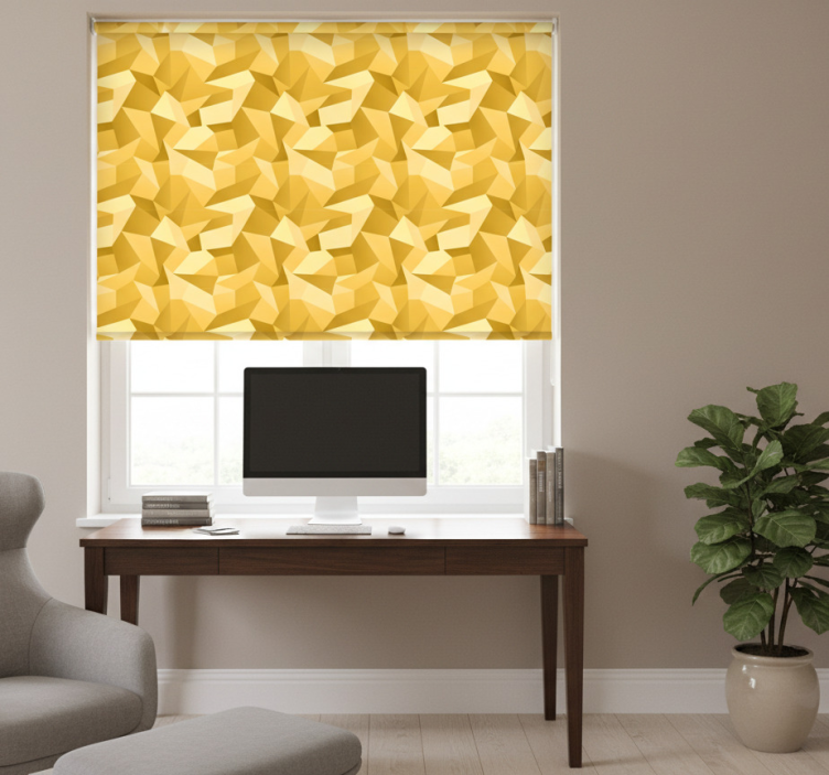 The Office roller blind with 3d gold geometric design office roller blind is not just a window covering; it is an essential element of contemporary décor. With its chic geometric patterns and luxurious gold hues, this roller blind inspires creativity and sophistication in any office setting. Elevate your workspace ambiance and enjoy a harmonious blend of style and functionality that encourages productivity!