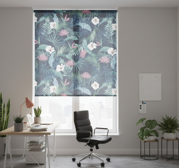 The Office roller blind with exotic leaf plants design office roller blind is an excellent choice for those looking to elevate their decor. Its unique design brings a refreshing and organic feel to your office, inspiring creativity and relaxation. Imagine working in an environment where nature's beauty surrounds you, enhancing your focus and productivity. This roller blind not only serves a functional purpose but also acts as a statement piece that complements your interior, making it a must-have addition to your workspace!