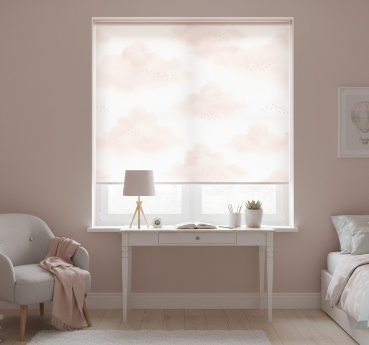 Pink roller blind in pink clouds design
