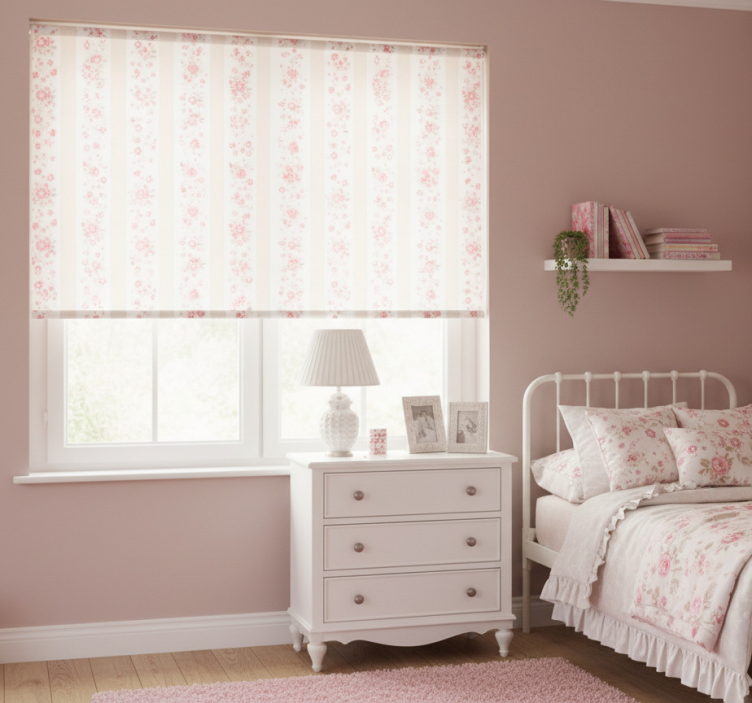 Reference: E8191Transform your space with our Pink roller blind in retro floral stripes, featuring a delightful design that combines charming floral patterns with vibrant pink stripes. This unique roller blind enhances any room with its retro flair, offering a perfect blend of style and functionality. Enjoy the easy assembly and disassembly in just two clicks, and experience the convenience of quick cleaning. Protect your space from direct sunlight while maintaining your privacy with this stunning addition to your home decor!