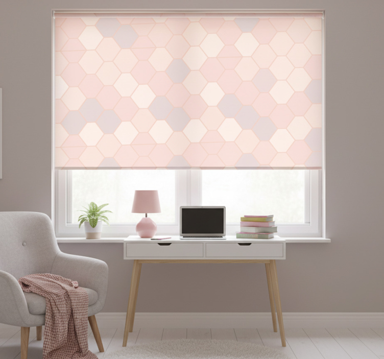 Reference: E8190Introducing our stunning Pink roller blind modern abstract pink shapes, designed to elevate your space with its vibrant graphic appeal. This roller blind features an enchanting blend of modern abstract pink shapes that bring a fresh and lively ambiance to any room. The elegant design not only enhances the aesthetic but also offers a functional solution for light control and privacy.