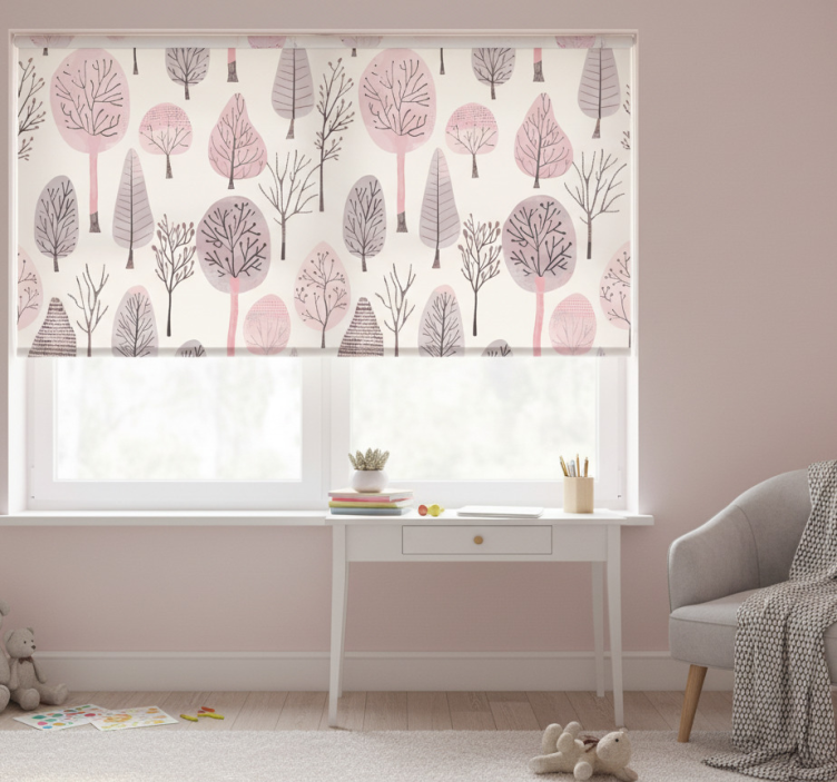 Pink roller blind with nordic tree design