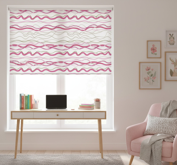 Pink roller blind with pink wavy stripes