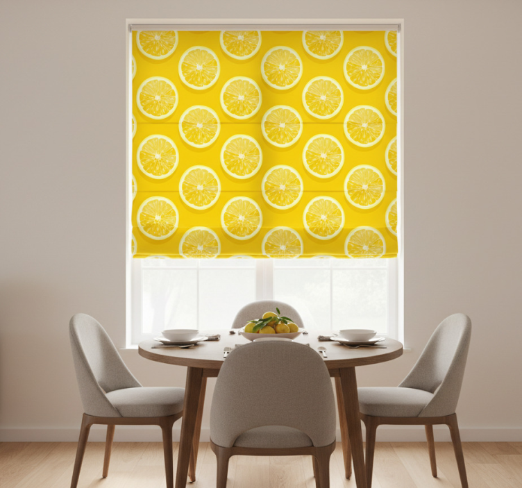 Reference: E6742Introducing our stunning Sliced lemons dining room roller blind, a delightful fusion of style and practicality! This roller blind features a vibrant design of sliced lemons that adds a refreshing touch to your dining space. With its easy assembly in just 2 clicks, effortless cleaning, and the ability to disassemble quickly, this window treatment is perfect for those who value both aesthetics and convenience. Not only does it protect your room from direct sunlight, but it also provides privacy when lowered, allowing you to enjoy your space without compromise!