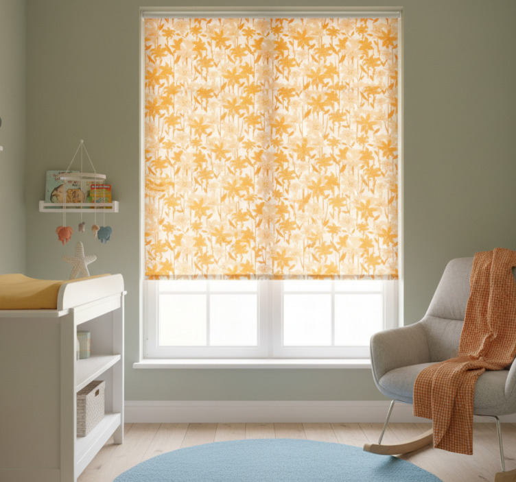 The Small cute orange flowers children room roller blind is the perfect solution for parents looking to enhance their child's room decor. Its lively floral design inspires creativity and joy, making it a fantastic focal point in any space. Not only does it improve the overall aesthetic, but it also provides essential functionality by protecting the room from direct sunlight, ensuring your child can play or rest comfortably. This roller blind is an investment in both beauty and practicality!