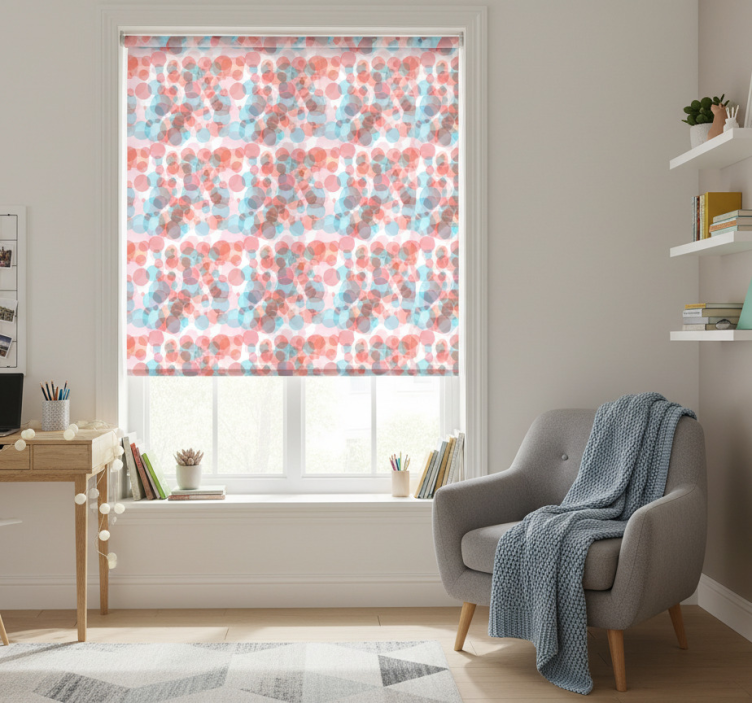 Reference: E7419Transform your space with our Sweet bubble teenage bedroom roller blind, featuring a delightful design that combines playful colors and enchanting patterns. This roller blind not only enhances the aesthetics of your room but also offers practical benefits. With easy assembly and disassembly, keeping your windows spotless is a breeze! It effectively protects your room from direct sunlight while providing the privacy you need when lowered. Enjoy a comfortable ambiance as this blind helps regulate room temperature, ensuring a cozy environment all day long!