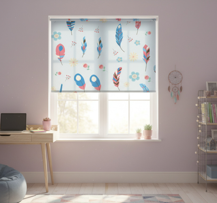 The Colorful feathers teenage bedroom roller blind is the perfect choice for decoration, bringing an uplifting and cheerful atmosphere to any space. Its eye-catching feather design adds a unique flair that resonates with the youthful spirit of teenagers. By choosing this roller blind, you're not just opting for practical window treatment; you're infusing creativity and inspiration into your teen's room!