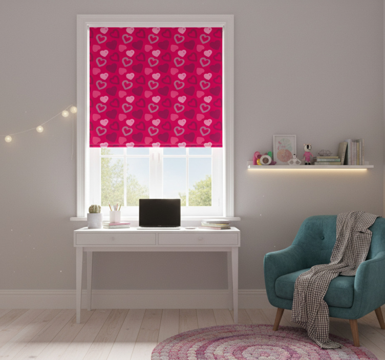 The Teenage bedroom roller blind fuchsia hearts is more than just a functional window treatment; it's a delightful way to express personality and style. This teenage bedroom roller blind adds a unique touch to your decor, creating a lively atmosphere that inspires creativity and comfort. Its eye-catching design enhances the overall aesthetic, making it a perfect addition to any teen's room. Let your space reflect your vibrant spirit!