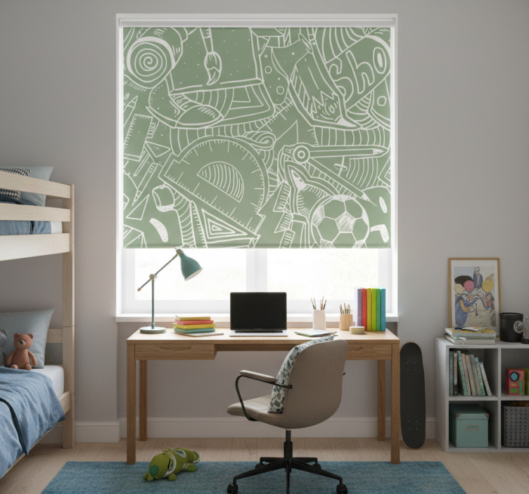 Reference: E7408Transform your teenage bedroom with our stunning Teenage bedroom roller blind green school chalk design! This unique roller blind features a vibrant green color reminiscent of school chalkboards, bringing a playful yet educational vibe to your space. It's perfect for inspiring creativity, with its stylish design that not only looks great but also serves practical purposes. The roller blind is easy to clean, offers privacy when lowered, and helps regulate room temperature, making it an essential addition to any teenager's room!