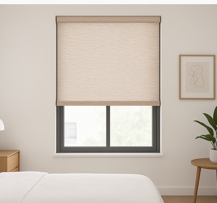 Reference: E5987Transform your space with the Teenage bedroom roller blind natural texture, designed to bring a touch of elegance and warmth to any teen's room. This stunning roller blind features a unique natural texture that enhances its visual appeal while providing essential functionality. With easy assembly in just two clicks, effortless cleaning, and the ability to regulate room temperature, this product is both practical and stylish. It protects the room from direct sunlight, ensures privacy when lowered, and even adds a layer of security by allowing you to see outside without being seen!