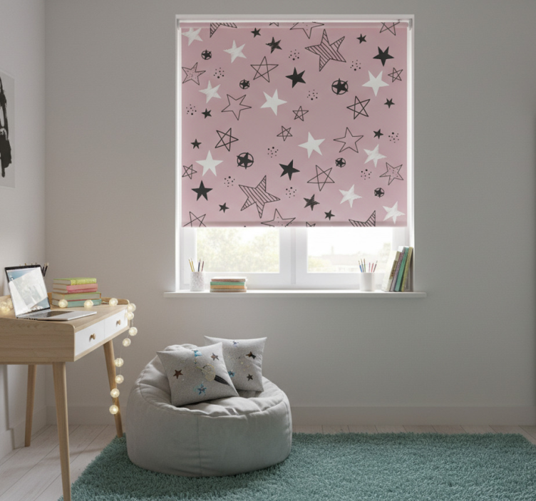 The Teenage bedroom roller blind with pink stars teenage bedroom roller blind is a stunning accent that inspires creativity and joy. Its charming star pattern captivates the imagination, making it an ideal choice for personalizing a teenager's space. This roller blind not only beautifies the room but also creates a cozy and inviting environment, encouraging relaxation and focus. Elevate the ambiance of any teenage bedroom with this delightful addition!