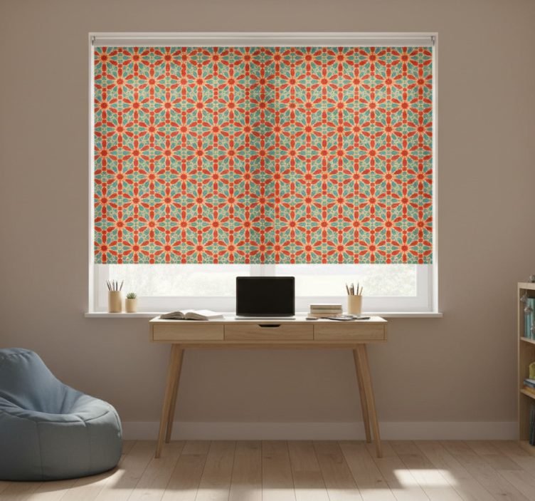 Reference: E7517Transform your space with our Teenage bedroom roller blind seamless arabic pattern, designed to infuse your room with a vibrant and sophisticated touch. This unique roller blind features an intricate arabic pattern that beautifully combines elegance and modernity. With its easy assembly in just two clicks, effortless cleaning, and the ability to regulate room temperature, this roller blind is the perfect addition to any teenage bedroom. Enjoy the privacy it offers when lowered, alongside the added benefit of security, allowing you to see outside without being seen.