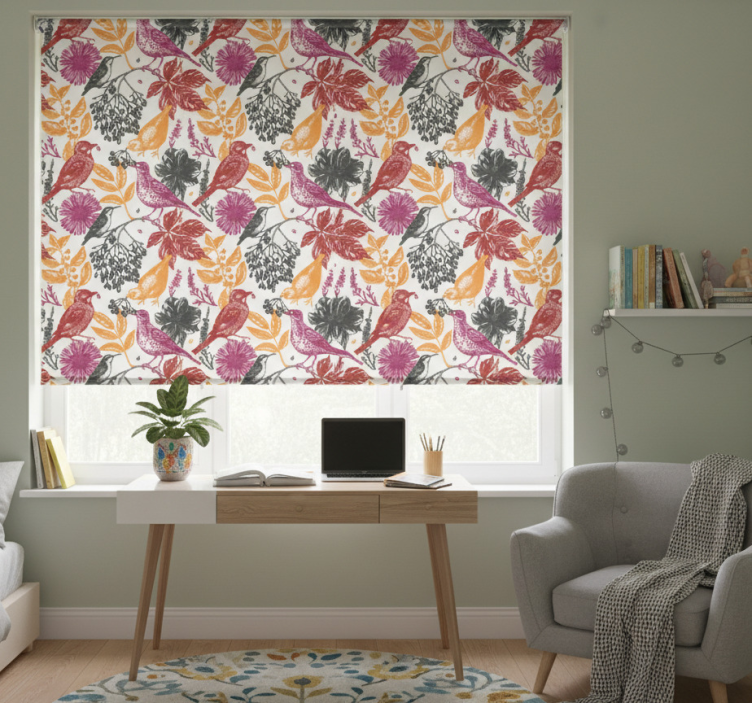 Reference: E7455Transform your space with the Teenage bedroom roller blind wild garden floral design. This vibrant roller blind features a stunning floral pattern that brings the beauty of nature indoors, combining lively colors and intricate designs that create a cheerful atmosphere. Not only does it enhance the aesthetics of any teenage bedroom, but it also offers practical benefits such as easy assembly in just two clicks, easy cleaning, and excellent light control. The roller blind protects the room from direct sunlight while providing privacy when lowered, making it a perfect choice for stylish yet functional decor!